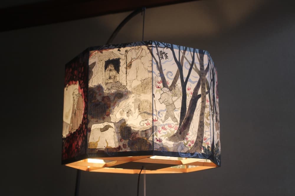 肘折の山の中には、こうしたたくさんの歴史や記憶が刻まれているのだろうと思います。伝えさんの語ってくれた話を姥様の語りとして再解釈してみて、灯籠絵にしてみたらどうなるだろうかと思い、今回制作してみました。