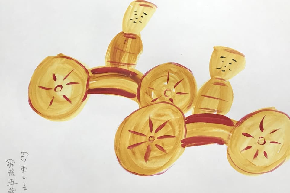 さて、今回灯籠中に登場する、「四つ車」という木製玩具があります。以前肘折の宿では、この四つ車が湯治客達によってマッサージをするのに使われていたそうで、車両の軸にはしなやかな本藤が仕込まれていたという話が残っています。用途に合わせて使う材料もしなやかに変えていく職人心が、玩具の中に静かに眠っています。
